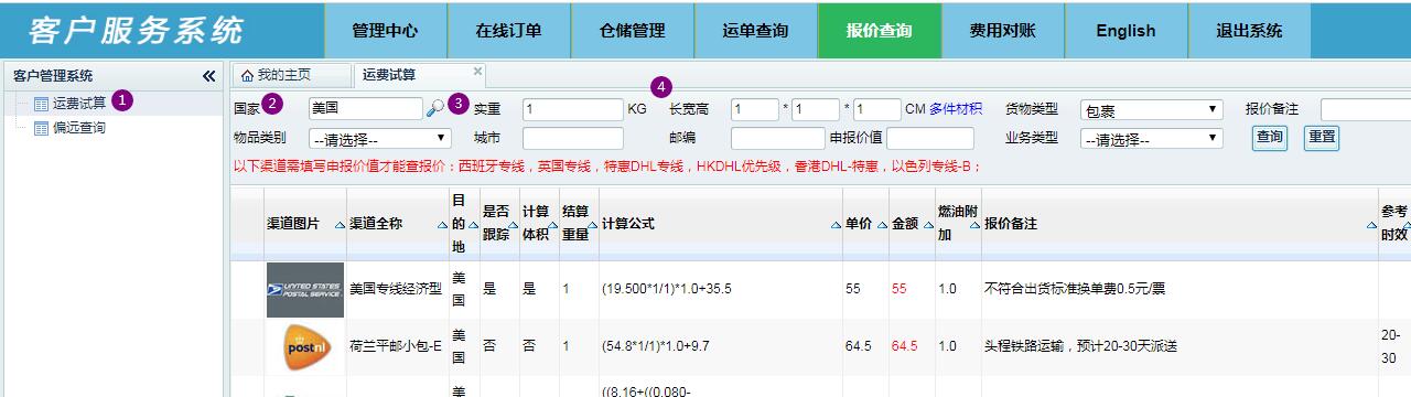 PS:个别渠道需要填写邮编跟申报价值才能试算。